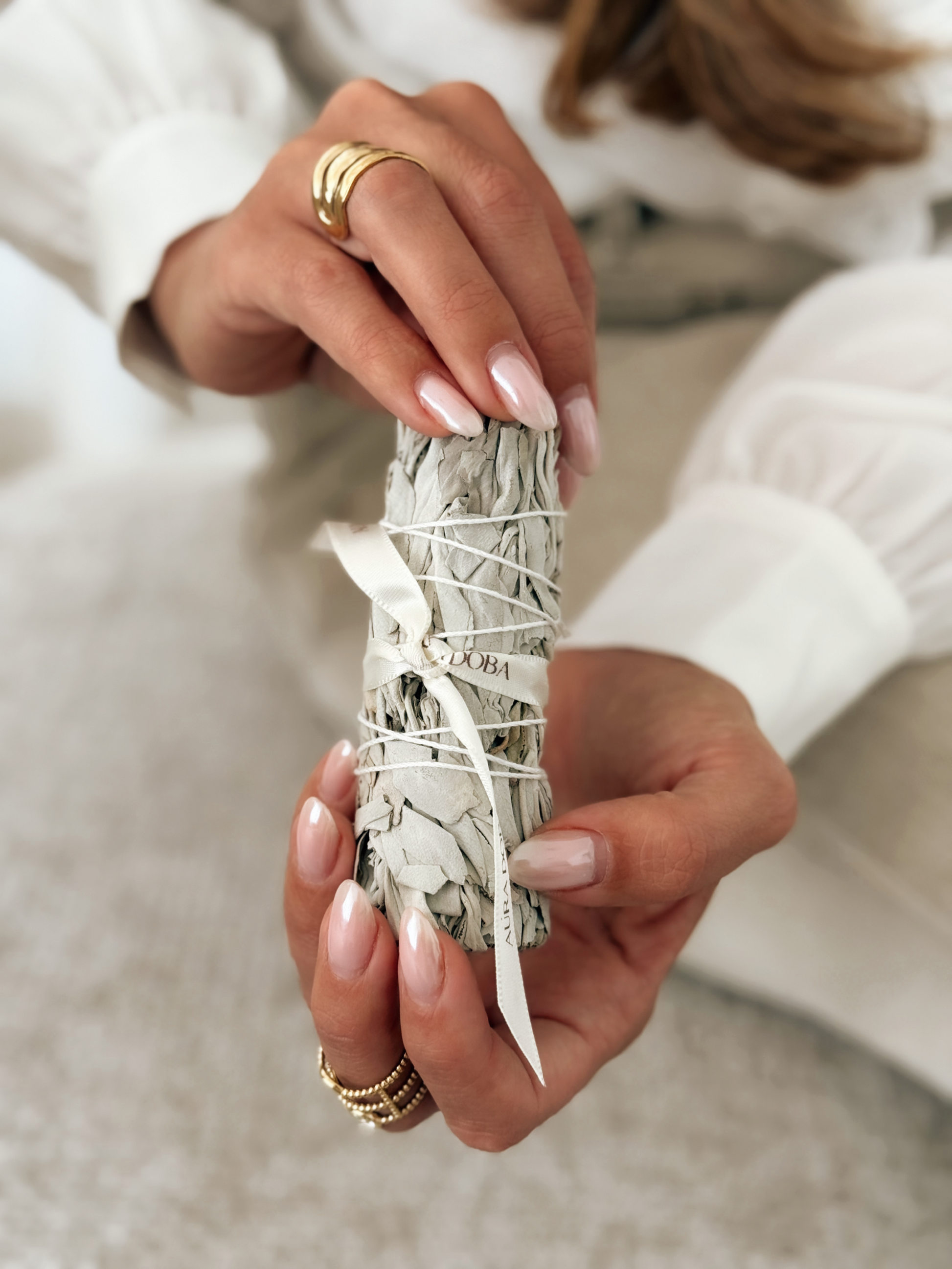 Allumez votre bâton de sauge et laissez-le brûler quelques secondes. Soufflez pour éteindre la flamme et laissez la fumée purifier votre espace. Pensez à ouvrir vos fenêtres lorsque vous l’utilisez.